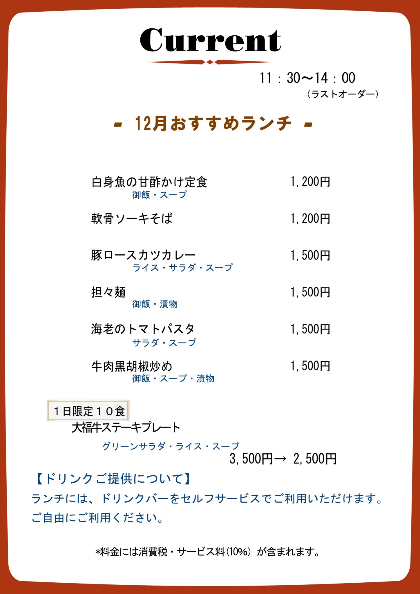- ※12月おすすめランチメニューは、こちらよりご確認ください