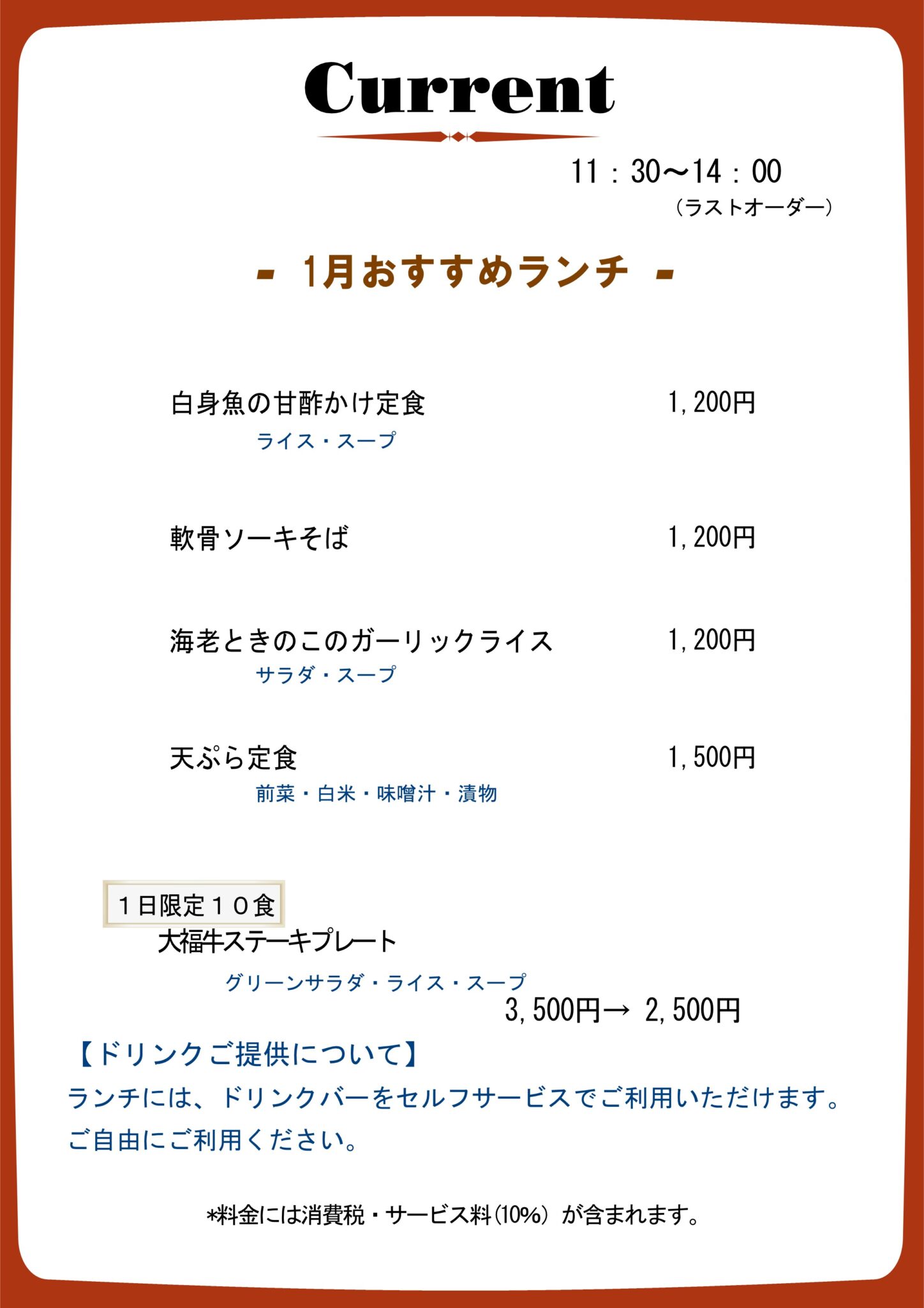 - ※1月おすすめランチメニューは、こちらよりご確認ください